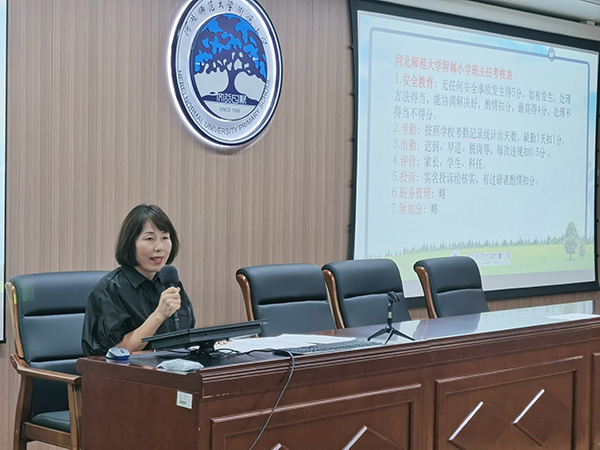 郭雅静对新修订的《班主任考核》办法做了详细解释与说明,明晰了新学期班主任工作目标与方向,并对上学期班主任考核中表现优异的老师提出表扬。本学期将继续探索班主任队伍建设的有效路径,开展多种形式的德育主题活动,持续深化家校协同育人研究。她寄语全体班主任要调整自己、鼓足干劲、履职尽责,永葆班主任工作的激情和干劲。