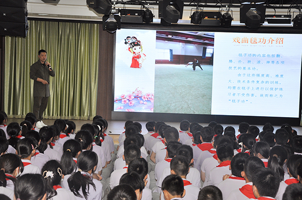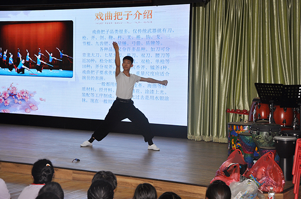 活动伊始,河北艺术职业学院戏剧系的老师们走上讲台,为师生带来深入浅出的戏曲知识讲座。老师们详细介绍了中国戏曲的形成、特征以及四功五法,让同学们对戏曲这一传统文化形式有了更加全面而深刻的认识。