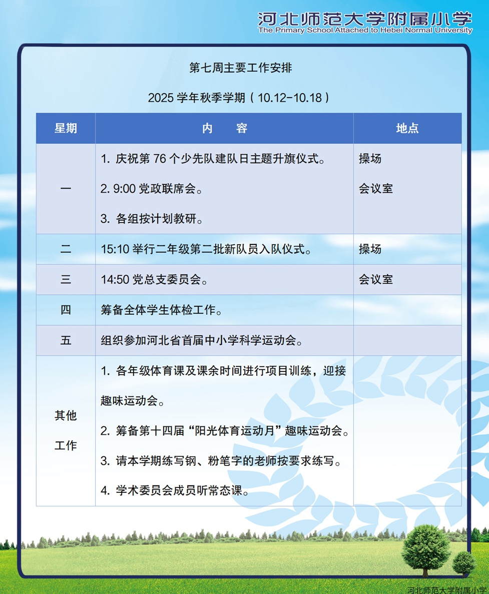第七周主要工作安排