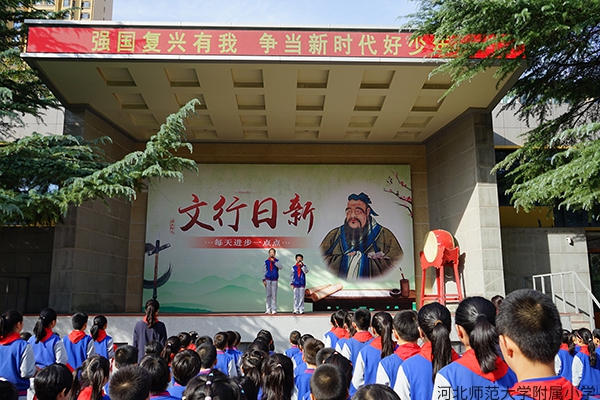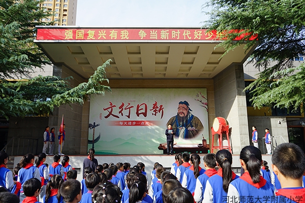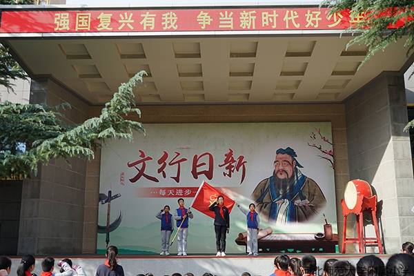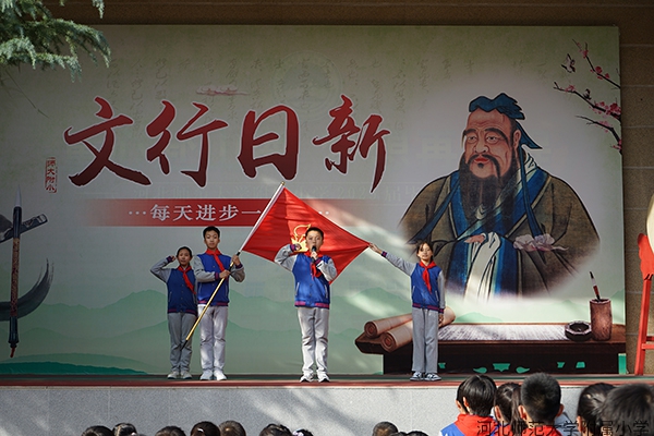 在庄严国歌声中,全校师生肃立行礼,共同拉开“强国复兴有我 争当新时代好少年”主题升旗仪式序幕。鲜艳红领巾迎风飘扬,尽显队员立志向、修品行、练本领的昂扬风貌。队员们凝神聚力,更加坚定从小听党话、跟党走的决心。