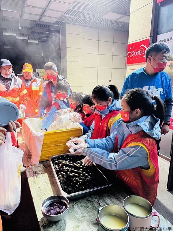 清晨五点,天还未亮,队员们便准时抵达集合点,带着热情与期待开启活动。在爱心驿站,大家亲手将早餐递到环卫工人手中,一句“您辛苦了,请趁热吃”,用真诚传递敬意。在中队辅导员路曼老师的指导下,队员们有序分组,从环卫工人手中接过扫帚、夹子等清理工具,正式参与街道保洁工作。