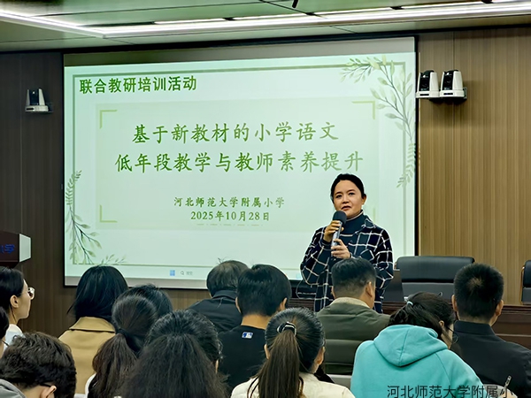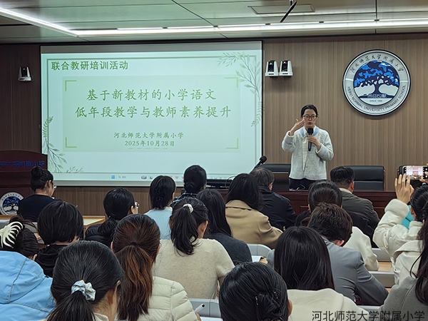 为深入贯彻新课标精神,推动低年段语文教学改革与教师专业发展,10月28日下午,在师大教育集团的引领下,我校作为小学学段联合教研牵头校,与师大附属实验小学、紫林湾小学、昝东小学共同举办“基于新教材的小学语文低年段教学与教师素养提升”专题培训。我校党总支书记田静敏、校长何建军、副校长管艳、师大附属实验小学副校长刘兴军、紫林湾小学校长赵权政及各校教师代表参加本次活动。