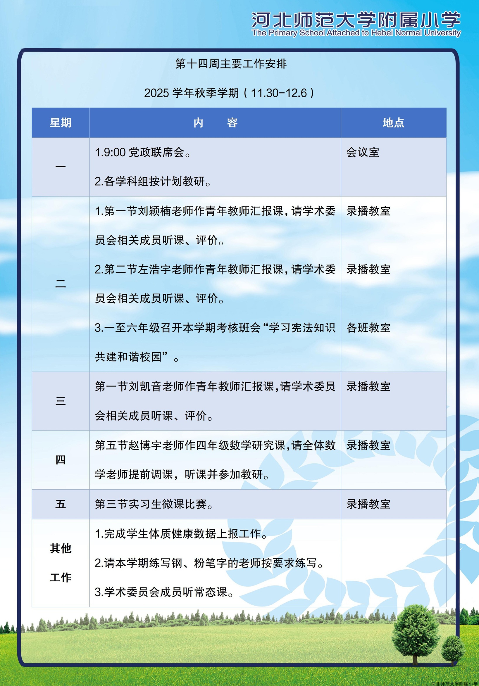第十四周主要工作安排