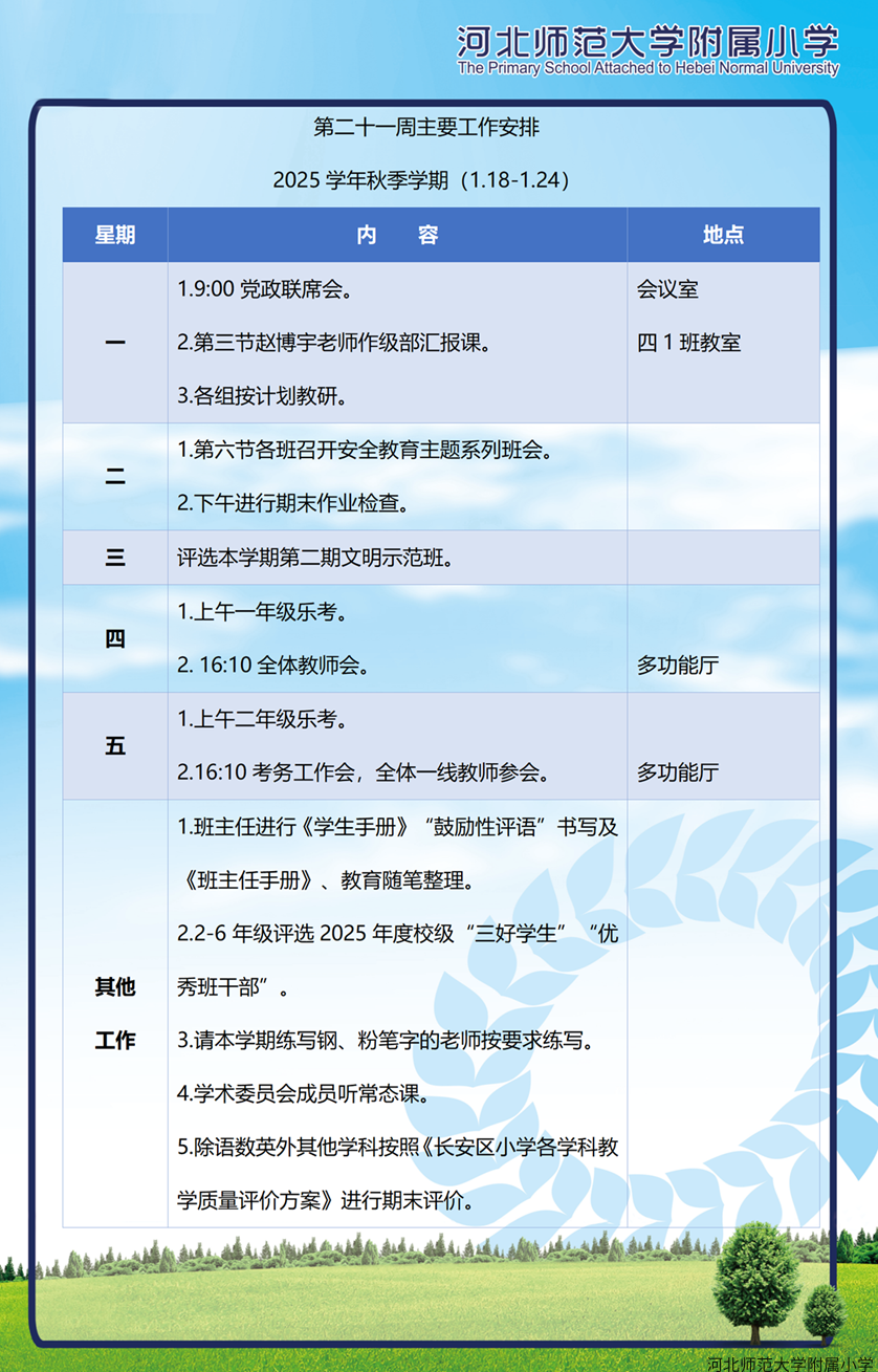 第二十一周主要工作安排