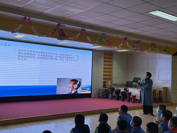高老师采用了故事穿插、互动交流等方式,图文并茂、深入浅出地讲解了青春期男孩的生理、心理特征和行为变化,并科学指导这一时期男孩的心理行为。高老师还教男孩们如何调节青春期的各种心态,学会与异性同学正常交往,避免不必要的疑惑和恐慌。同时,她也对青春期防止性骚扰、性侵害等问题进行了有效的指导。