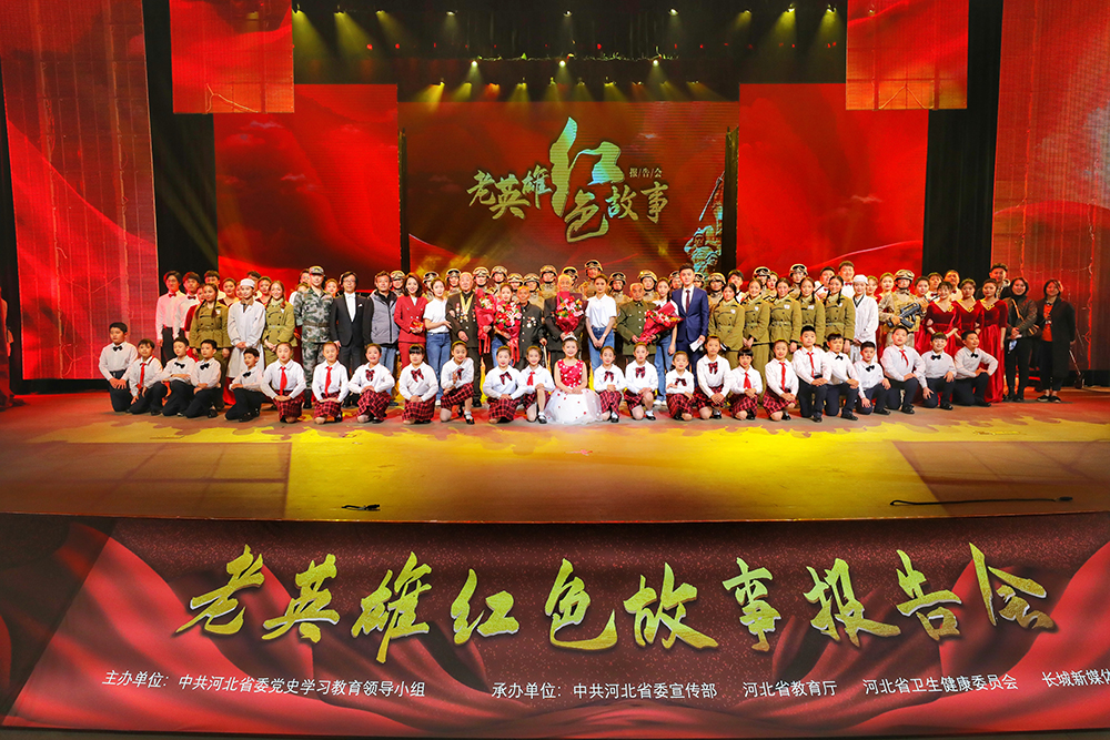 演出现场,在合唱团“妈妈教我一支歌,没有共产党就没有新中国”的清脆歌声中,报告会拉开帷幕。接着,四位河北籍老英雄身穿军装、佩戴奖章,为现场听众上了一堂生动的党史教育课。合唱团的孩子们饱含深情唱起《歌唱二小放牛郎》,仔细聆听为他守墓60余载已经91岁高龄的儿时伙伴史林山老人动情讲述王二小的感人故事。舞台上他们认真表演、用心倾听,被英雄们为了国家和民族甘愿牺牲、无私奉献的事迹深深地感染,也激励着他们更加坚定做共产主义事业接班人的理想和信念,最后将决心融入到激情澎湃的《中国少年先锋队队歌》的歌声中。