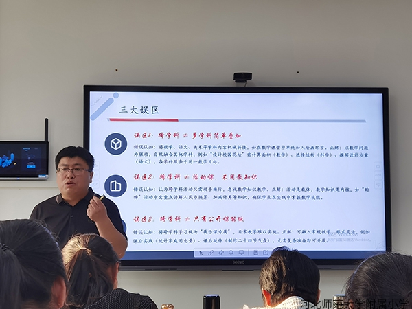 培训围绕“跨学科主题学习”核心任务,构建“理论引领—实践示范—成果输出”递进式课程体系。管艳副校长以《课程融合教学探索路径》为主题开展专题讲座,系统阐释跨学科教学内涵要义与实施逻辑,引导参训教师打破学科壁垒,将核心素养培育融入教学全过程。