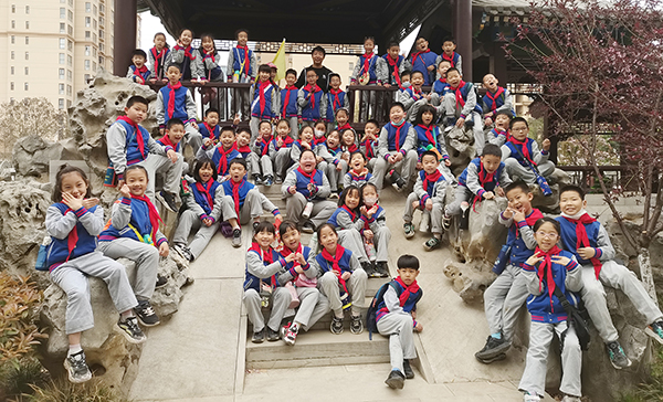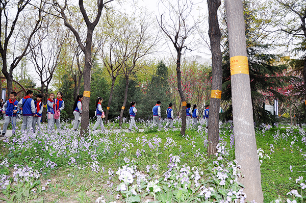行进中,同学们相互鼓励,互相帮助,响亮的口号此起彼伏。沿着既定路线,师生们到达中山路民心河,并继续沿北直行。在老师和家长志愿者的带领下,同学们游览民心河两侧的亭台楼阁和迷你园林,鉴赏沿途草木、花朵。历时三个小时,全体师生圆满完成远足活动。