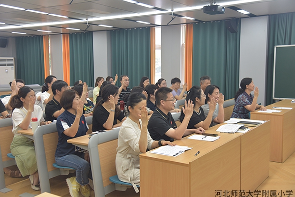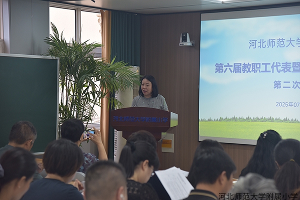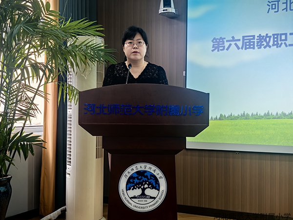 大会由工会委员郑天主持。党总支书记田静敏致辞,勉励全体代表务必以强烈的主人翁意识,认真履行各自职责,加强学校制度建设,强化制度执行和监督,不断提高学校治理体系和治理能力现代化,逐步把制度优势转化为治理效能。副校长陈乃睿对《河北师范大学附属小学教师系列职称评审量化细则》修订方案进行解读,她从细则修订的背景、基本原则,以及评审标准中政治思想条件、专技工作条件、业绩成果、科研成果等各项指标的具体量化方式,都一一进行了说明。在解读过程中,陈乃睿结合学校实际情况,对一些重点修订问题进行了深入分析,让代表们对细则有了更全面深入的理解。