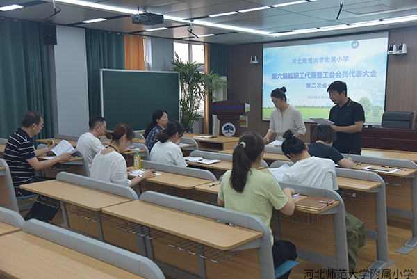 7月3日上午,河北师范大学附属小学第六届教职工代表大会暨工会会员代表大会第二次全体会议在我校多功能厅隆重召开。党总支书记田静敏、校长何建军等教职工和工会会员代表29人齐聚一堂,共商校事,共谋学校改革发展大计,共同助力学校高质量发展。