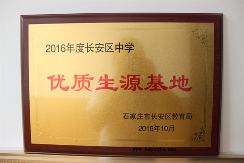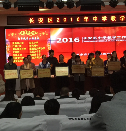在长安区教育局“2016年度中高考先进单位和个人”表彰大会上,我校蝉联“初中优质生源基地”荣誉称号。